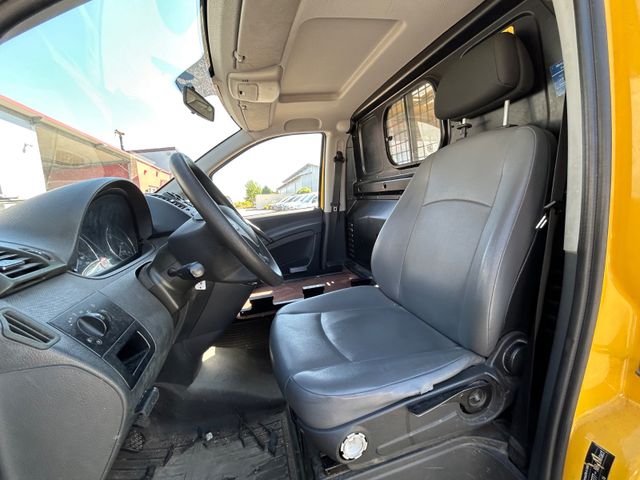 Adaptives Bremslicht, Airbag Fahrerseite, Ausführung: Vito Kasten, Außenspiegel asphärisch, beide, Befestigungsschienen für Dachträger, Bremsassistent, Frontscheibe mit Scheibenantenne, Generator 180 A, Heckklappe, Innenraumfilter: Pollenfilter, Karosserie/Aufbau: Kasten (Standard), Karosserie/Aufbau: lang, Lenkrad (Lenksäule mech. verstellbar), LKW-Zulassung, Modellpflege, Motor 2,1 Ltr. - 70 kW CDI, Radstand 3200 mm, Reifen-Reparaturkit mit Kompressor, Schadstoffarm nach Abgasnorm Euro 5, Schiebetür Lade-/Fahrgastraum rechts, Sitzbezug / Polsterung: Stoff Lima, Stahlfelgen 6,5x16, Verkleidung im Lade-/FG-Raum: Hartfaser halbhoch